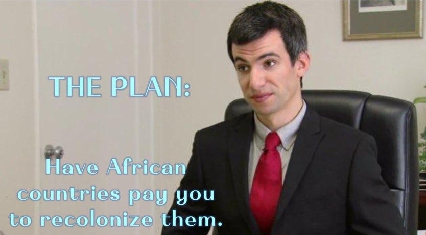 I’ll begin by first laying out the broad framework of his premise, then discuss the idea to “recolonize” Africa, followed in part two by his revisionist perspective on colonial history, and conclude with a fascinating take on the colonization of the United States.